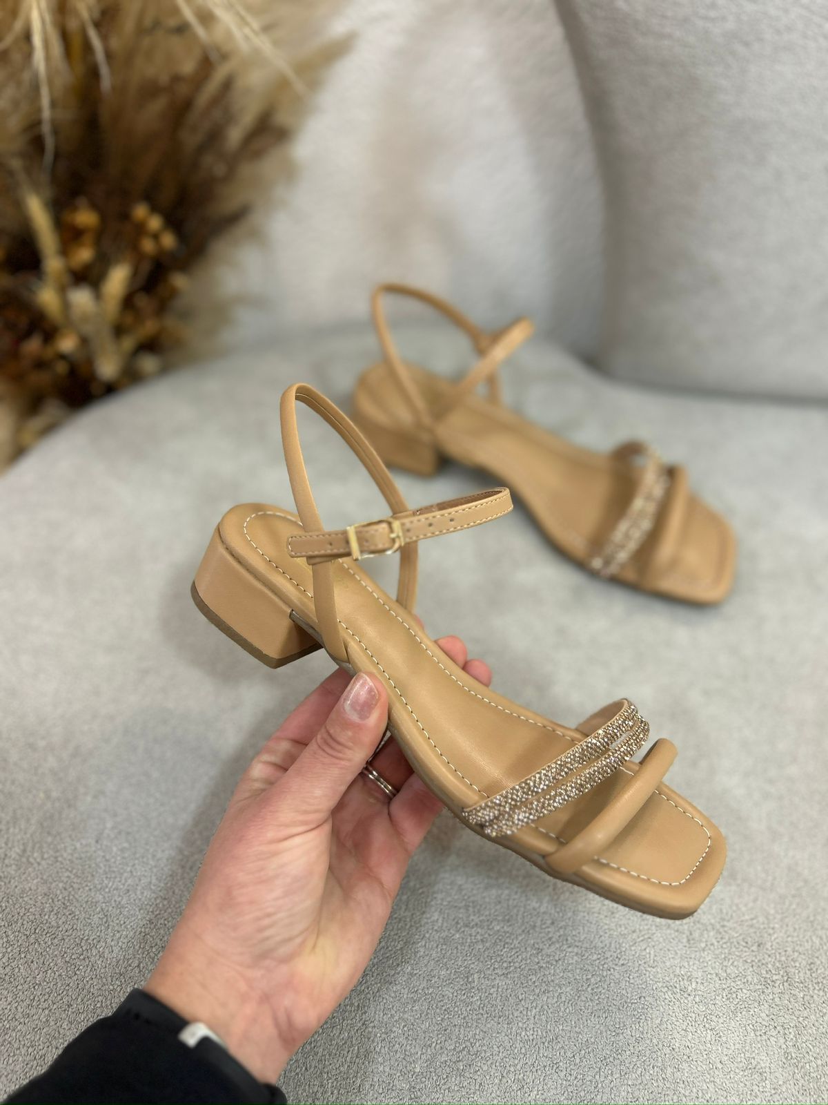 A combinação perfeita de conforto, tendência e brilho. Esta sandália minimalista no tom nude é ideal para alongar a silhueta e adicionar um toque de luxo discreto a qualquer look. O salto bloco baixo garante estabilidade, tornando-a ideal para uso prolongado.